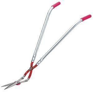 雑草は地面に生えてます。雑草を刈るとなると腰をかがめたりしゃがんだりと大変です。本製品は、立ったままでも雑草を刈り込むことができる道具で、両手でハンドルを開いたり閉じたりして刈り込む刈込鋏です。ハンドルは握りやすい角度になっていて、開閉の動きをサポートする専用バネが仕組んであり、腕の疲れを抑えてくれます。また、信頼のおける日本製で、鍛錬されて出来上がった刃は、草にしっかりと刃が食い込んで逃がさないV字カット刃に仕上げてますので、ストレス無く気持ち良く切っていただけます。さらに、刃の部分を地面から適度に浮かしてスムーズに作業ができるよう、刃の軸裏側に安定板を装着してます(安定板の厚みは約1cmです)。保管時には必ず、ストッパーで刃先の開きをロックし、専用の刃先カバーを装着してください。